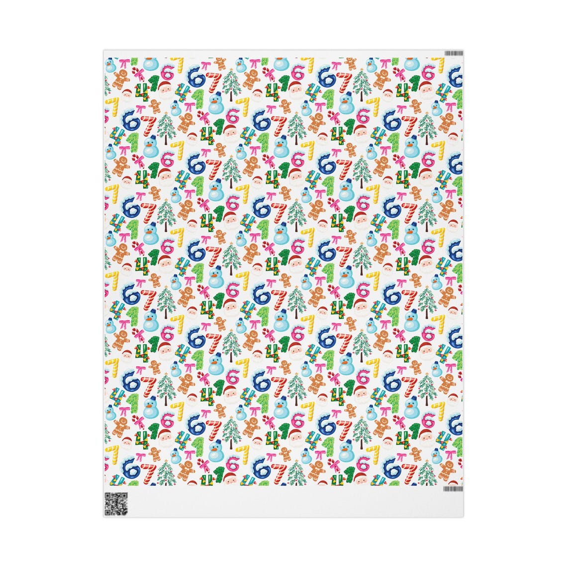 .: Please note: Wrapping paper includes white spaces at top and bottom edges with a bar and QR code