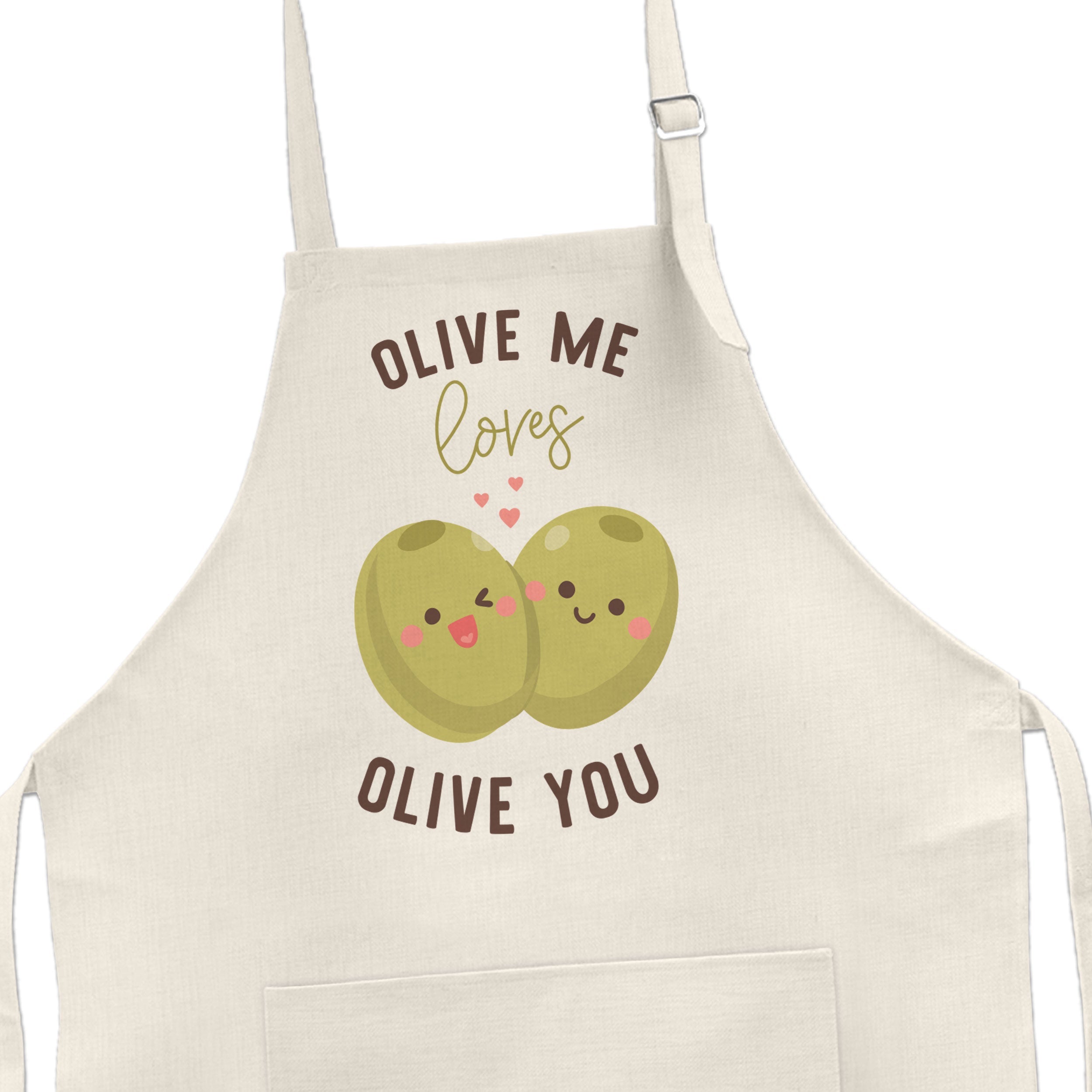 Linen Adult Bib Apron | olive me loves olive you apron | funny valentine's day | all of me valentine double pocket apron