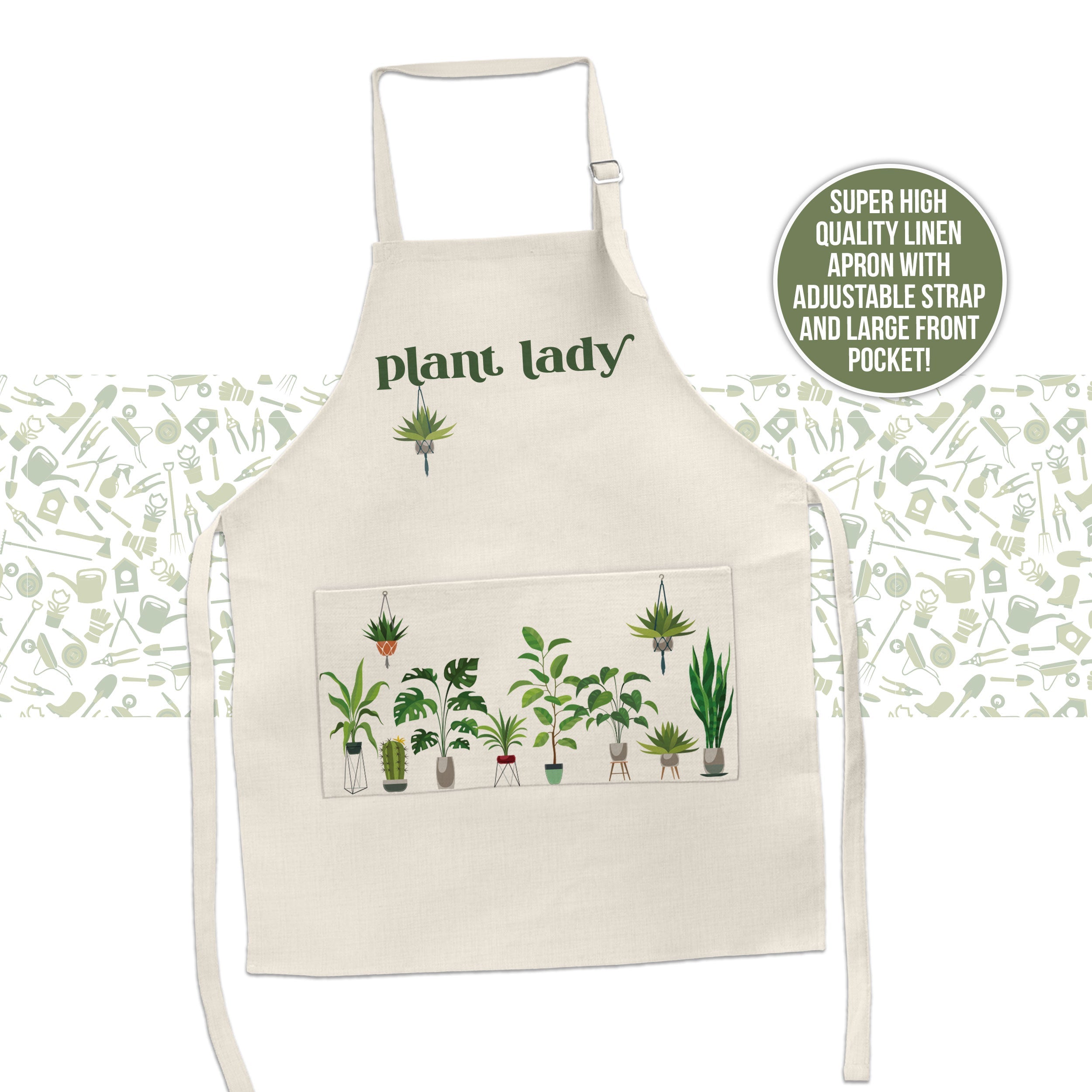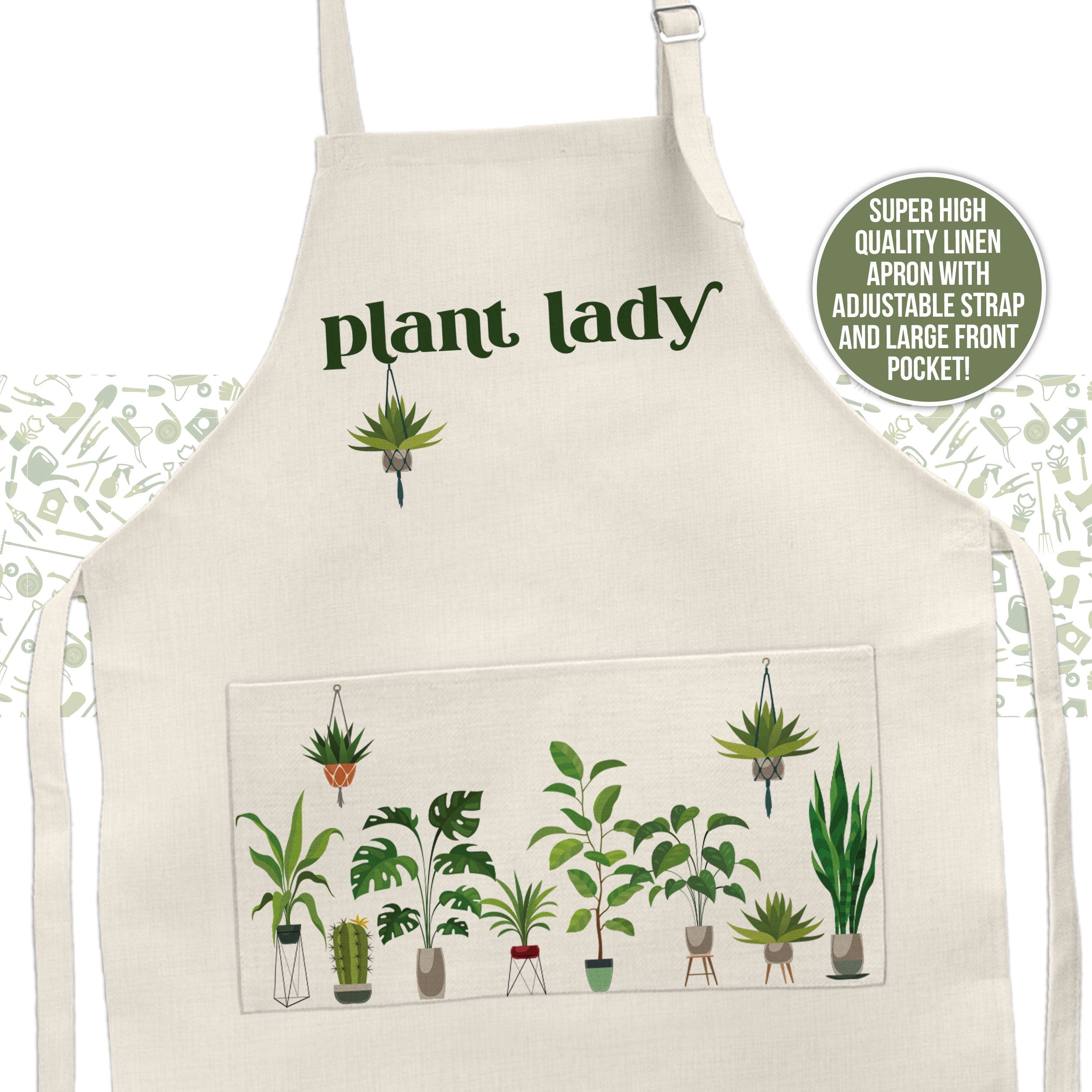 Linen Adult Bib Apron | plant lady apron | funny gift for your favorite gardener | plant lovers double pocket apron
